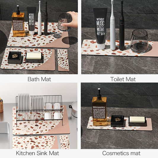 Absorbent Mat Kitchen Dishes Drain Pad Rubber Dish Drying Kitchen Mats